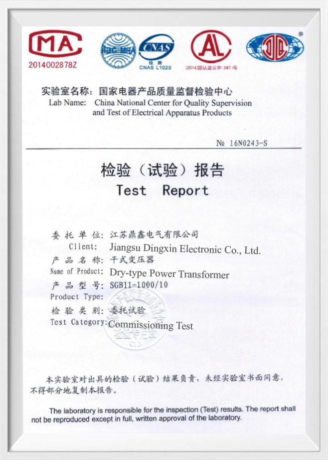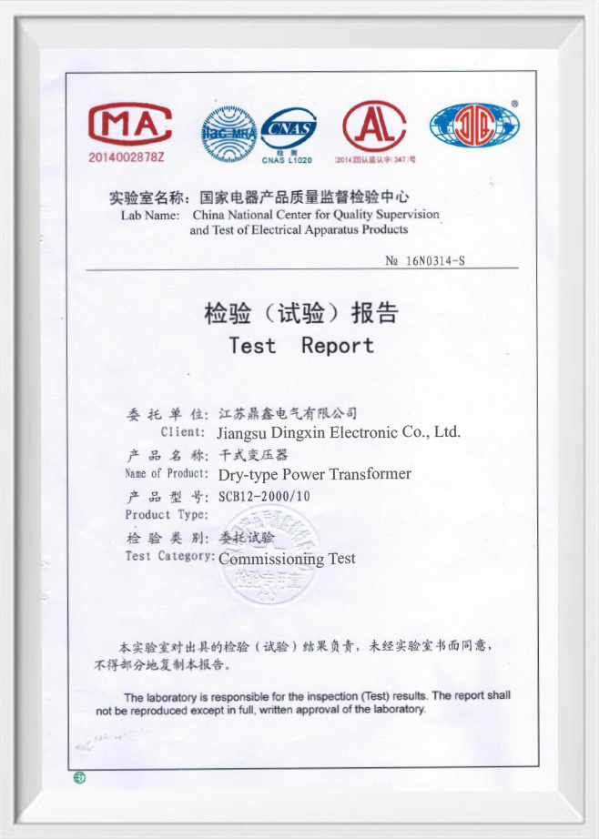 SCB12-2000/10KV Type Test Report of Energy-saving Type 2